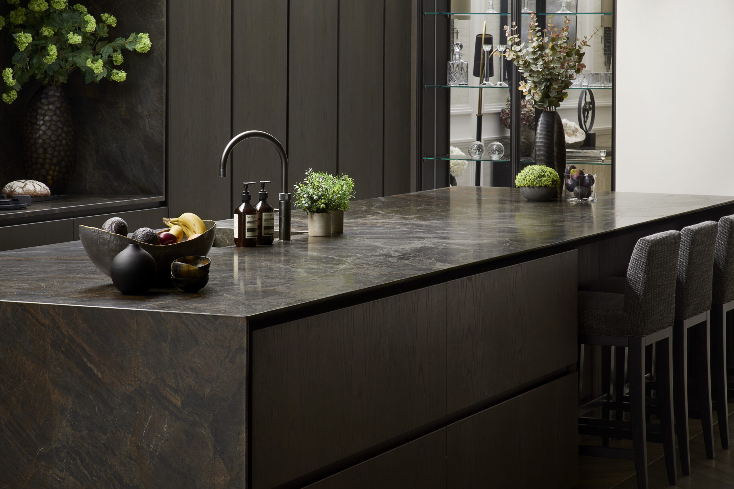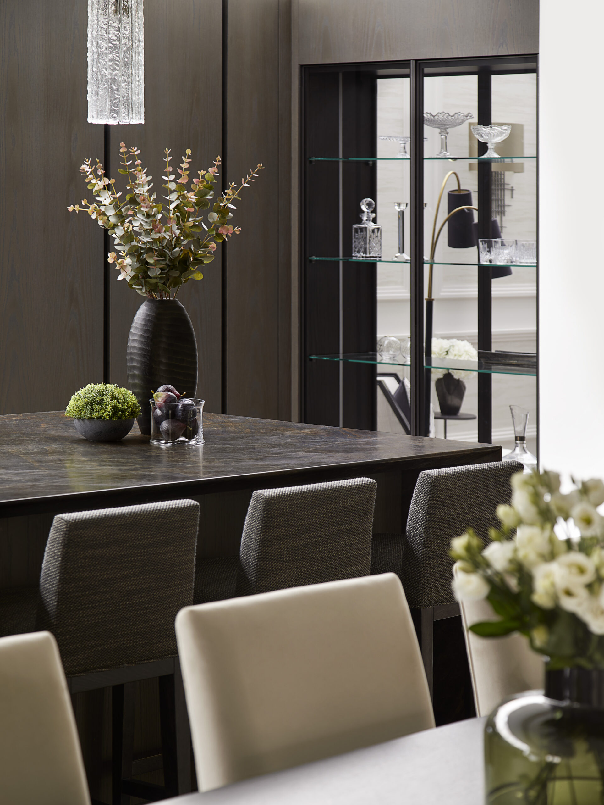 From initial concept through to installation, we designed and delivered the complete bespoke joinery, lighting and furniture package, employing dark woods and rich, timeless tonal layers to create a sophisticated and enduring interior scheme.